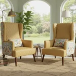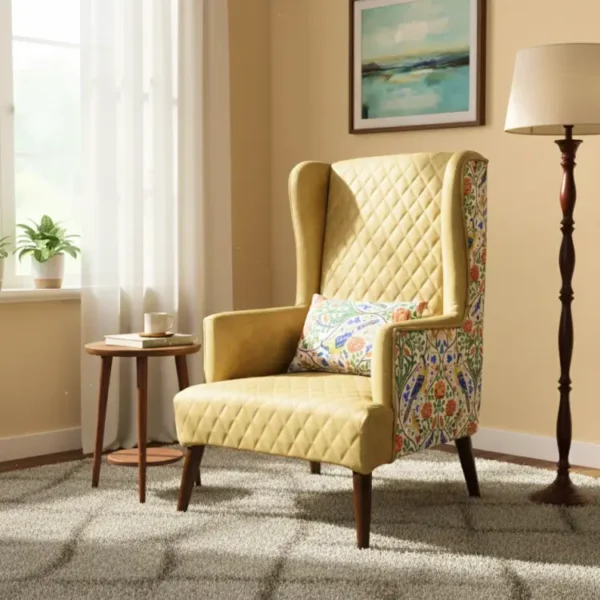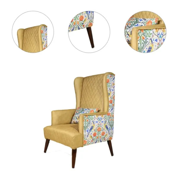 This printed arm chair features elegant teak wood legs and is fully customizable in color, size, and pairing. Designed for comfort and versatility, it’s perfect for curated interiors and coordinated sets.