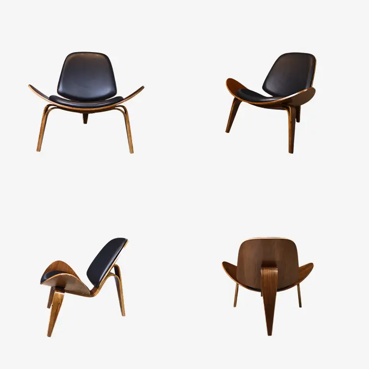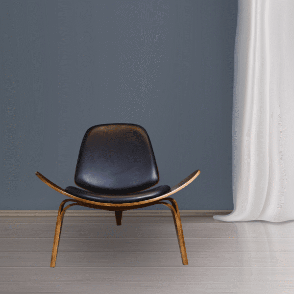 This sleek lounge chair features a curved teak wood frame and plush black cushioning. Its ergonomic design and minimalist elegance make it a perfect fit for contemporary interiors and refined relaxation spaces.