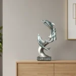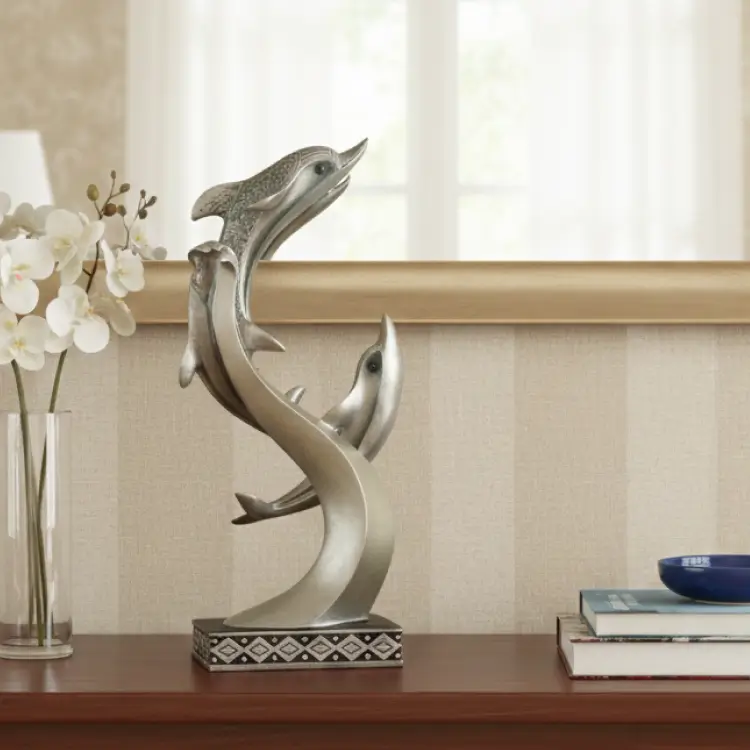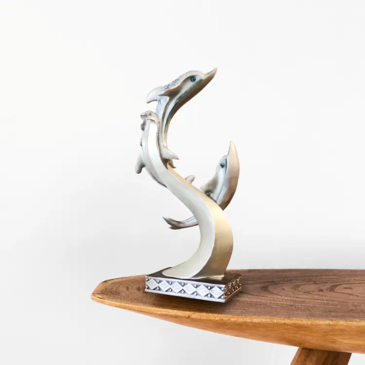 Bring a calming ocean vibe to your home with this elegant Dolphin Trio sculpture. Featuring three dolphins in a flowing design, it adds a refreshing and stylish touch to any table, shelf, or living room space.
