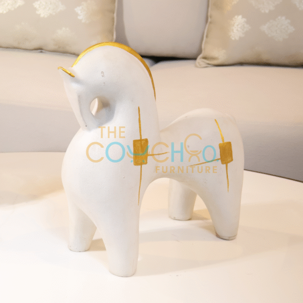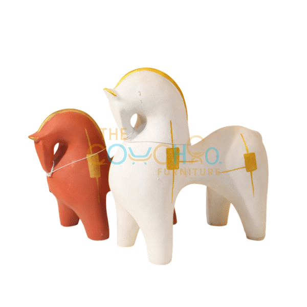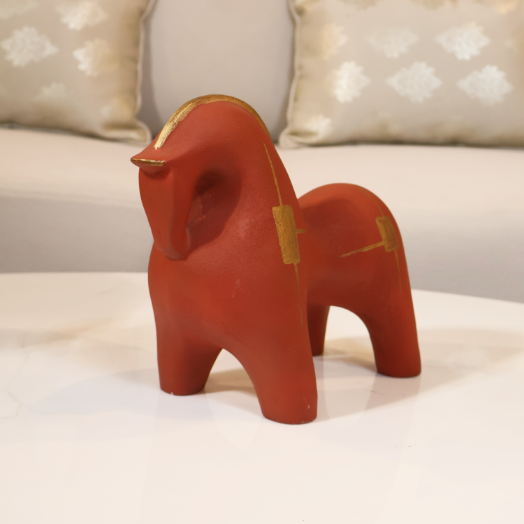 The Figurine Horses feature a sleek, minimal design available in bold red and elegant white, each highlighted with refined gold accents. Stylish and modern, they make a striking décor piece whether displayed individually or as a matching pair.