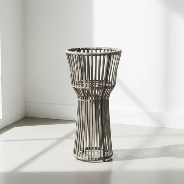 Enhance your garden or patio with this stylish Modern Garden Planter stand. Crafted from durable, all-weather grey rope weaving with an elegant hourglass design, it provides a contemporary base for your favorite plants.