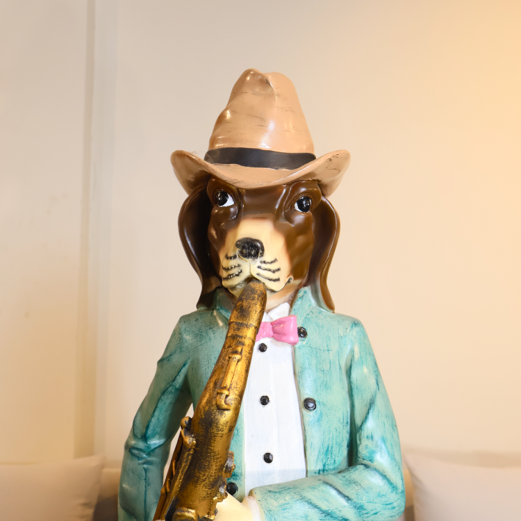 The Musician Animal Set features two charming animal performers holding a saxophone and vintage mic, dressed in vibrant colors. A quirky, artistic décor piece that adds personality and musical charm to any space.
