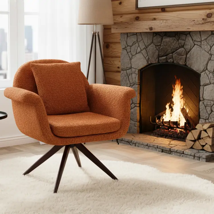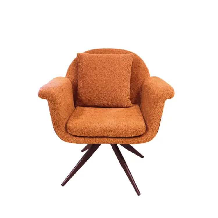 This imported Brookley armchair features orange-brown fabric leatherette upholstery and a sleek metal frame. Designed for comfort and style, it’s a modern accent piece ideal for living rooms, lounges, or executive spaces.