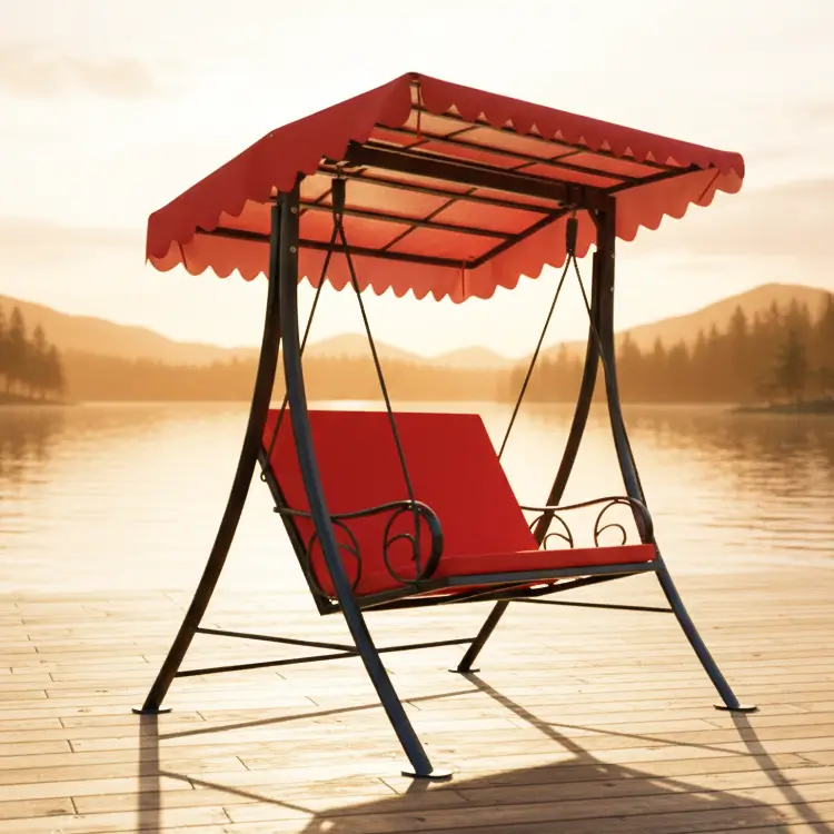 Enjoy your garden with this durable Outdoor Canopy Swing. Featuring a sturdy steel frame, comfortable 2-3 seater red cushions, and an adjustable scalloped canopy for shade. It’s the perfect spot for outdoor relaxation and conversation.