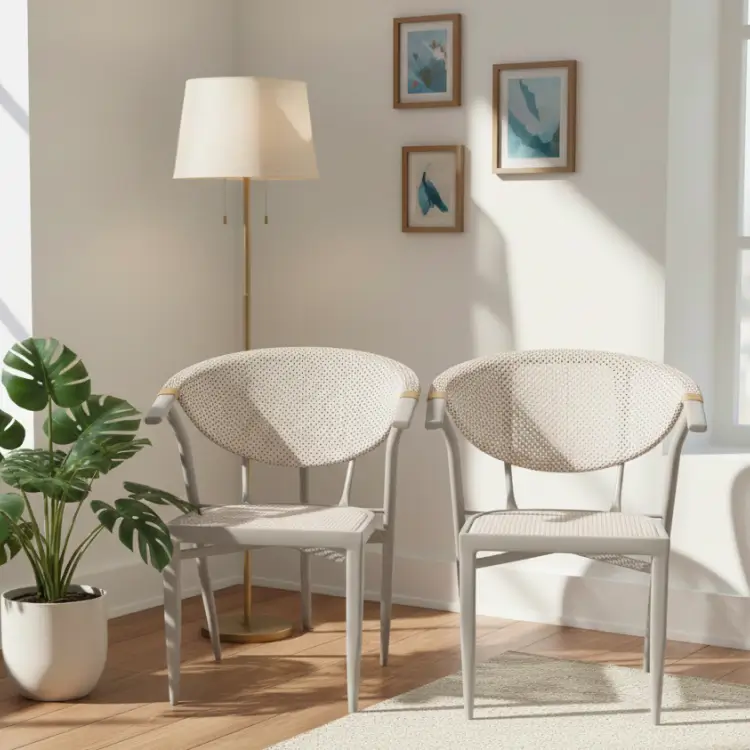 Enhance your outdoor area with this stylish Outdoor Wicker Dining set. This compact 3-piece bistro set features elegant white synthetic wicker chairs and a matching glass-top table, perfect for a garden, patio, or balcony setting. The set is built with a sturdy, rust-resistant frame and durable, all-weather wicker designed to withstand outdoor elements.