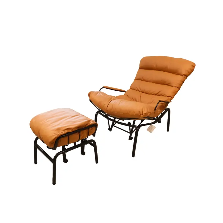 This imported rocking chair features a durable steel metal frame and a matching footstool for added comfort. Its sleek design and smooth motion offer a stylish, relaxing experience for modern interiors.