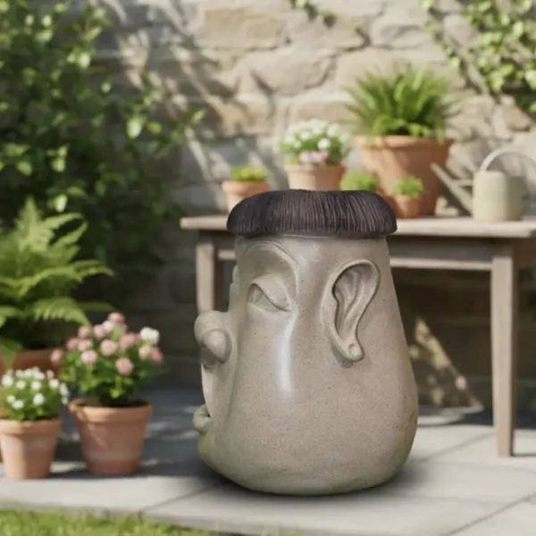 Bring character to your garden with this unique Stone Face Planter. The heavy-duty, faux-stone design features a wide-open mouth perfect for small plants, giving your greenery hilarious ‘hair.’ An eye-catching and conversation-starting piece for any outdoor space.
