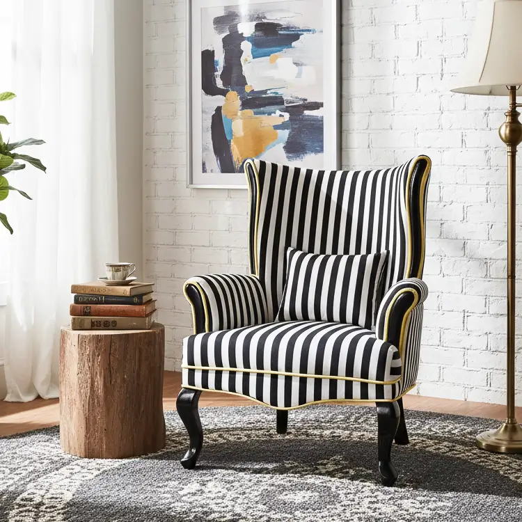 The Zebra Chair stands out with its bold pattern and refined silhouette. Crafted with PU-painted teak wood legs, it adds a touch of wild elegance and sturdy charm to any modern space.